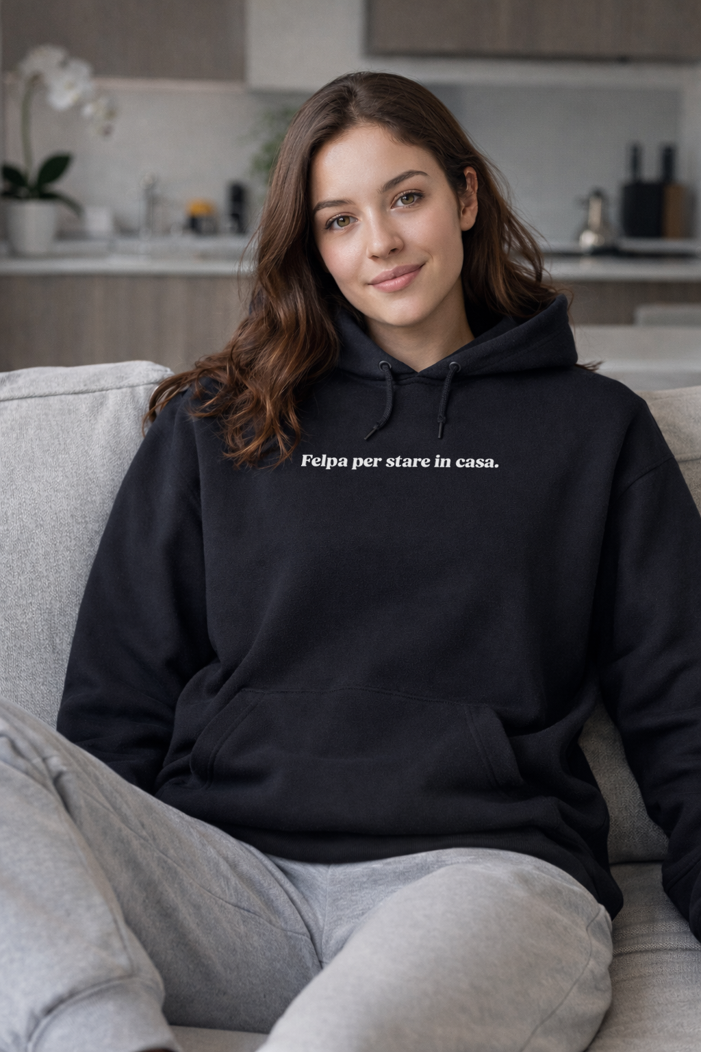 "Felpa per stare in casa."